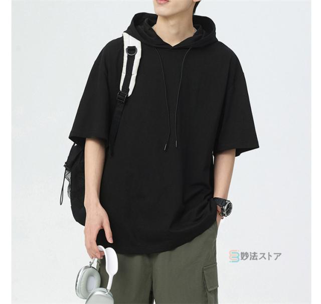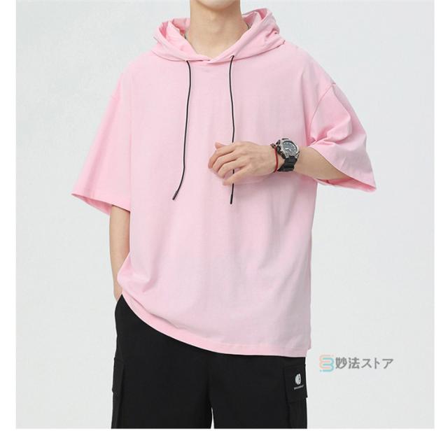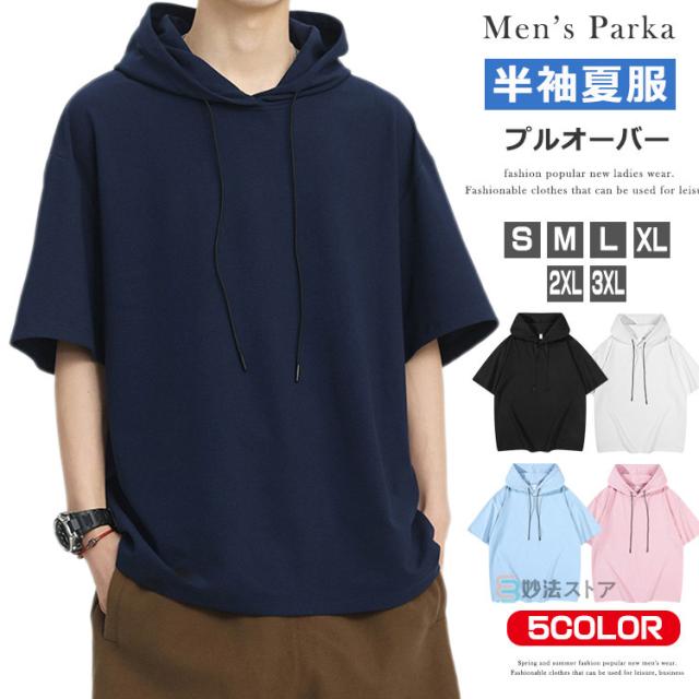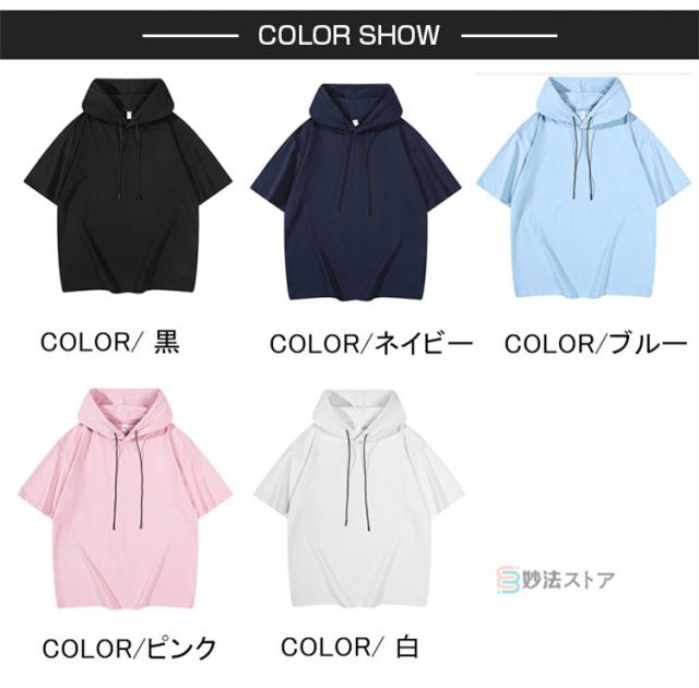 半袖 無地 パーカー メンズ 夏パーカー プルオーバーパーカー トップス 半袖パーカー Tパーカー フード付きtシャツ レディース 薄手 カットソー シンプル スポーツ カジュアル ルームウェア ダンス プルパーカー 20代 30代 40代 ファッション