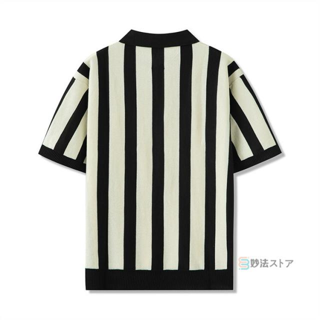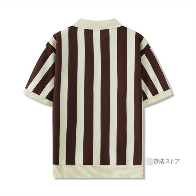 半袖ニット ニット ポロシャツ メンズ サマーニット サマーセーター ストライプ