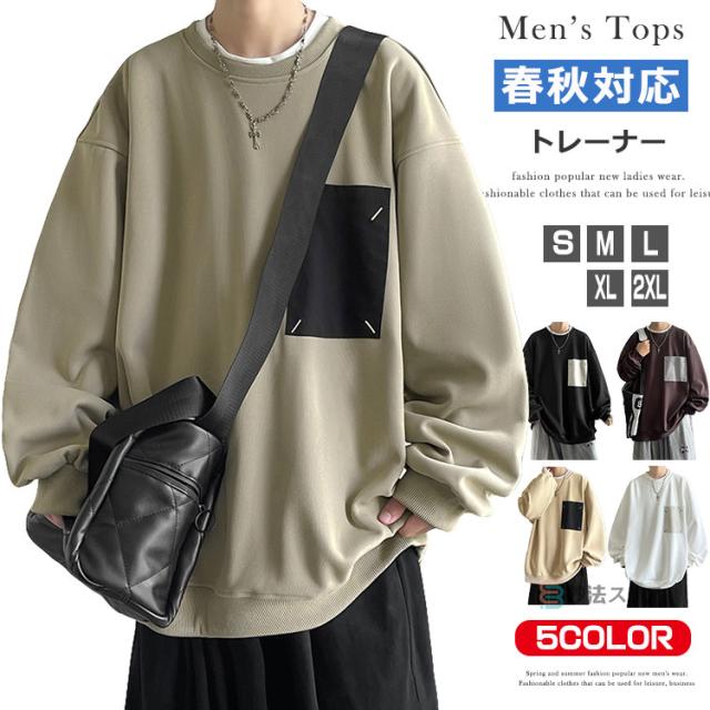 トレーナー メンズ オーバーサイズ スウェット プルオーバー 長袖 クルーネック スエット ビッグトレーナー トップス ゆったり 春秋 秋物 カジュアル 韓国ファッション 長袖トレーナー ストリート オシャレ