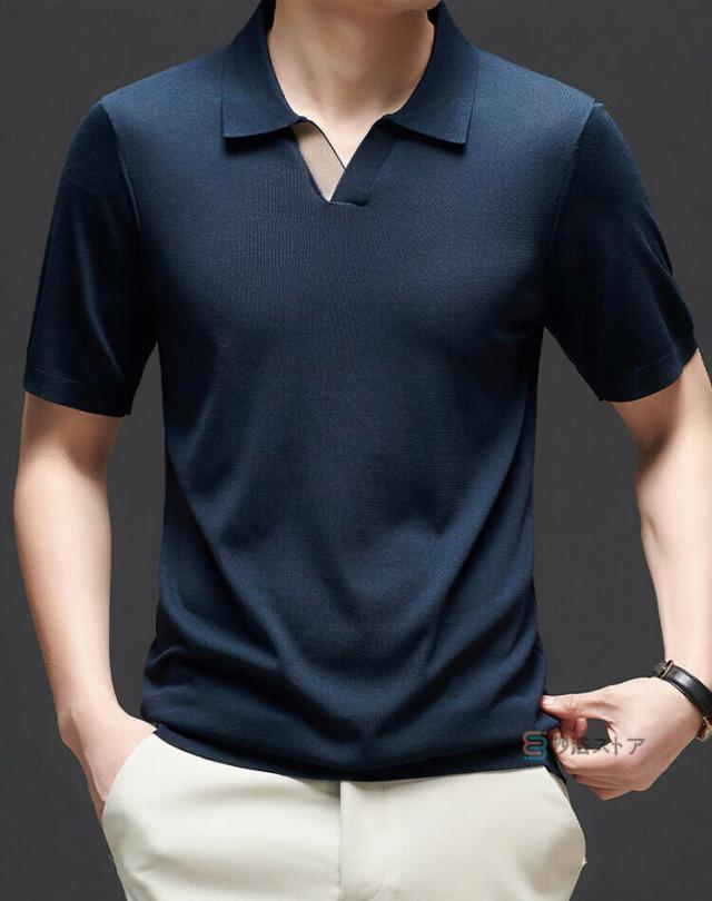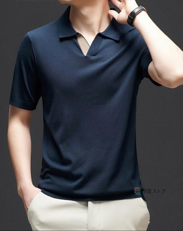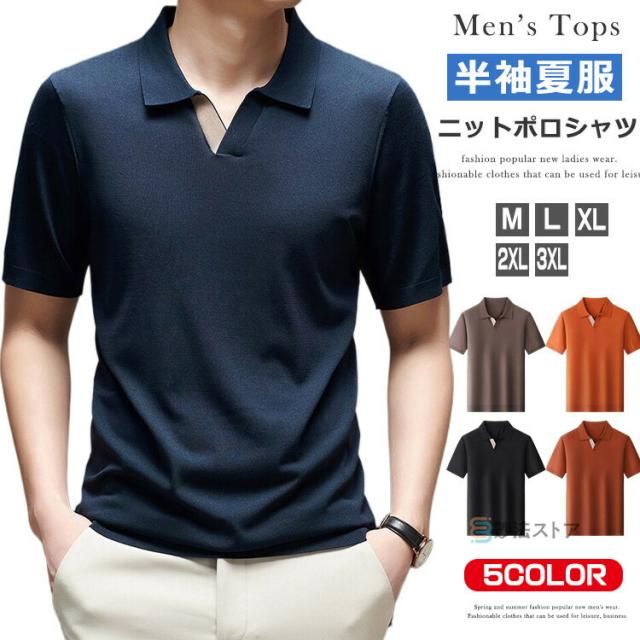半袖ニット ポロシャツ メンズ スキッパーポロ サマーニット ニットポロシャツ サマーセーター Vネック 無地 半袖 ニットシャツ トップス ゴルフウェア ニットポロ ゴルフ ビジネス 折襟 半袖ポロシャツ 細身 ニット 紳士服 夏 夏物 父の日 贈り物