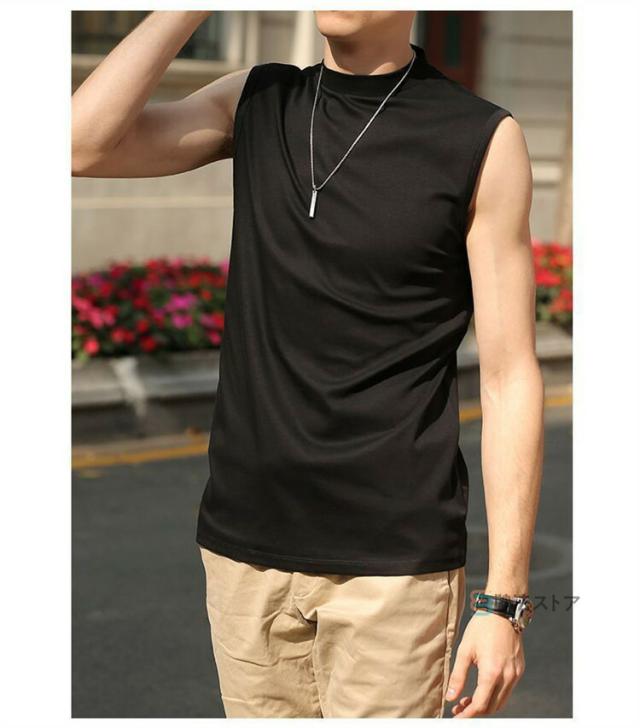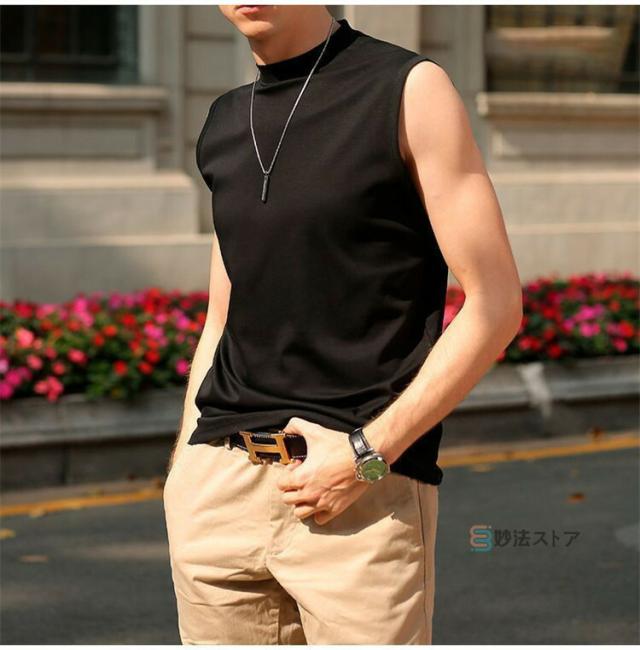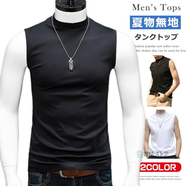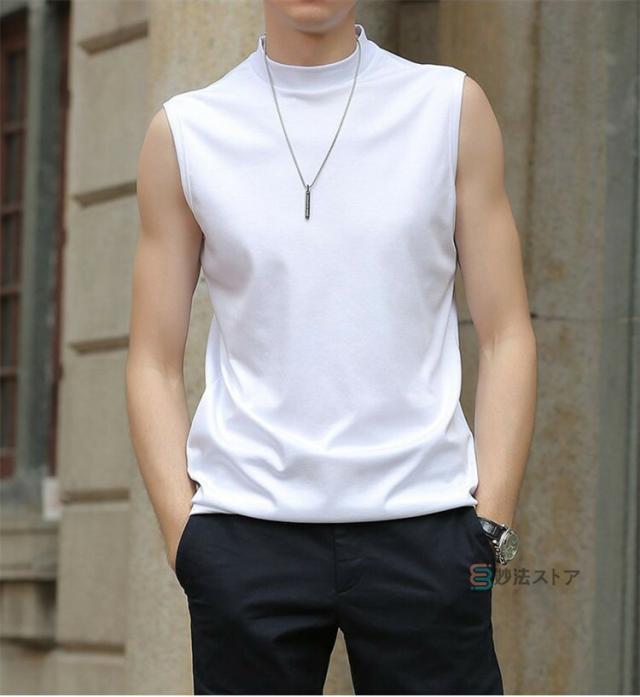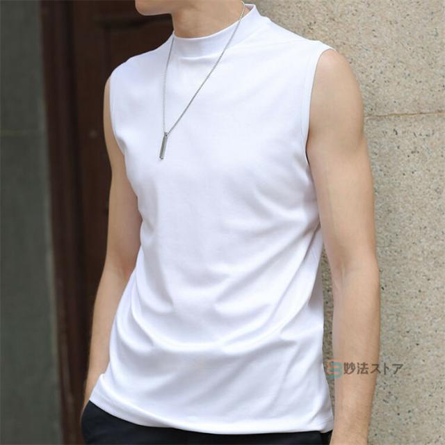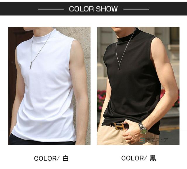 送料無料 タンクトップ モックネック メンズ ゴルフウエア ゴルフ 夏 ノースリーブ モックネックシャツ ハイネックTシャツ 白tシャツ 黒タンク インナー ウェア 男性 かっこいい スポーツ ダンス トップス カットソー カジュアル ストレッチ 涼しい 無地 作業着 父の日