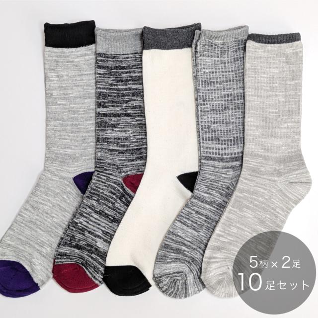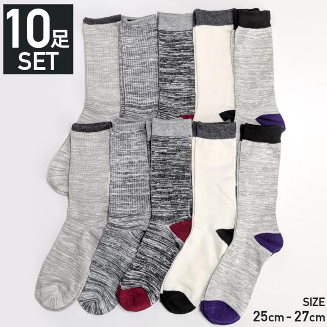 靴下 メンズ ソックス クルー丈 スラブ 10足セット 25-27cm