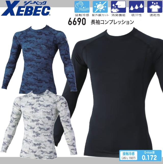 ジーベック 6690 長袖コンプレッション XEBEC 接触冷感 紫外線カット 消臭機能 吸汗性 速乾性