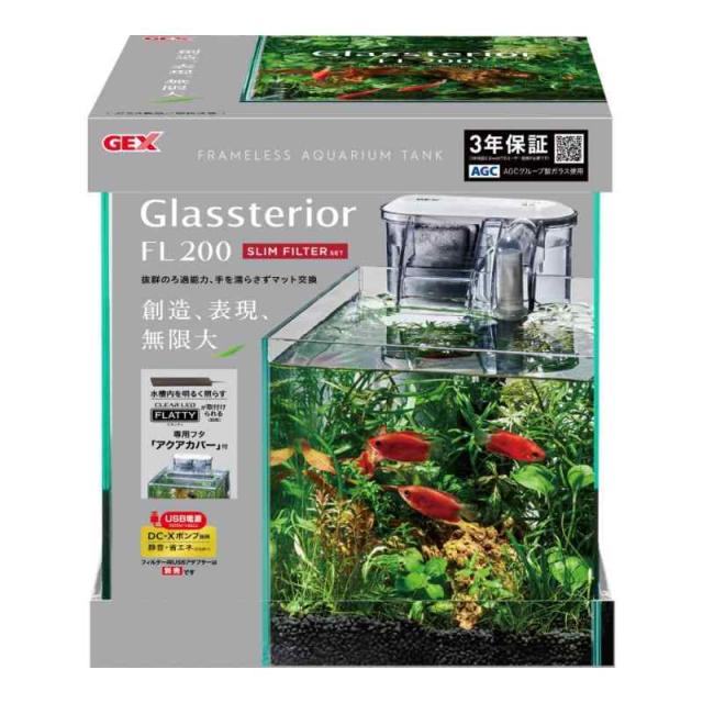 創造、表現、無限大 「透明感」にこだわるグラステリア水槽シリーズ。 水槽内を明るく照らす別売のクリアLEDフラッティが取付けられる、専用フタ「アクアカバー」付き。