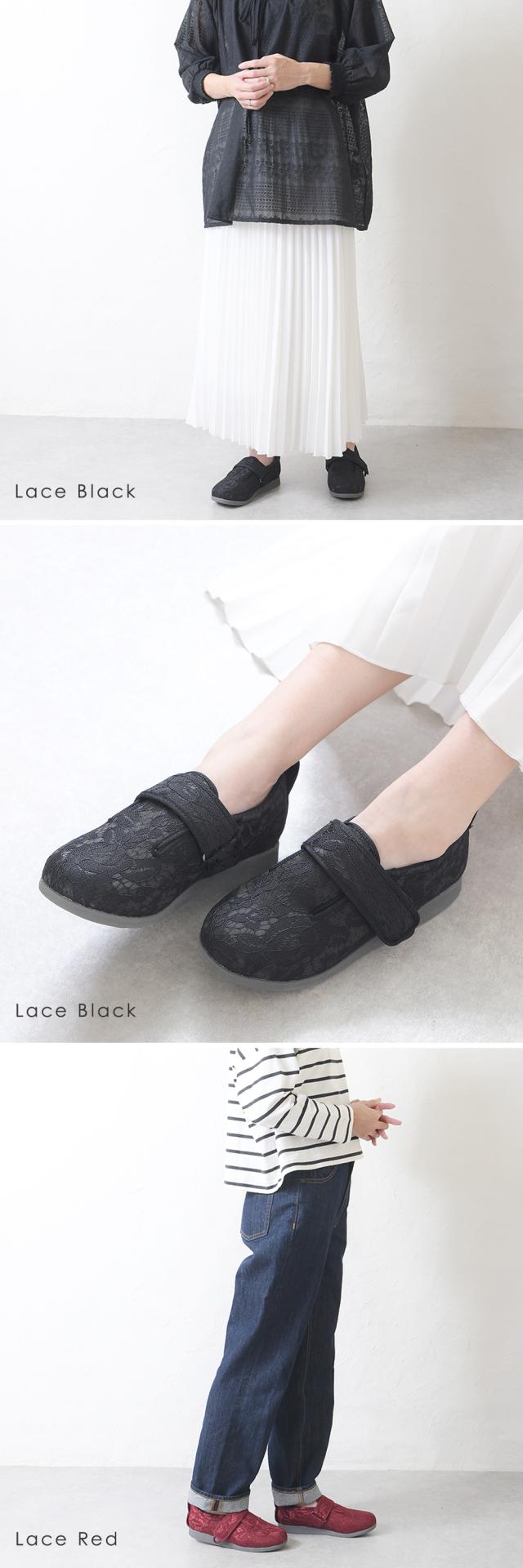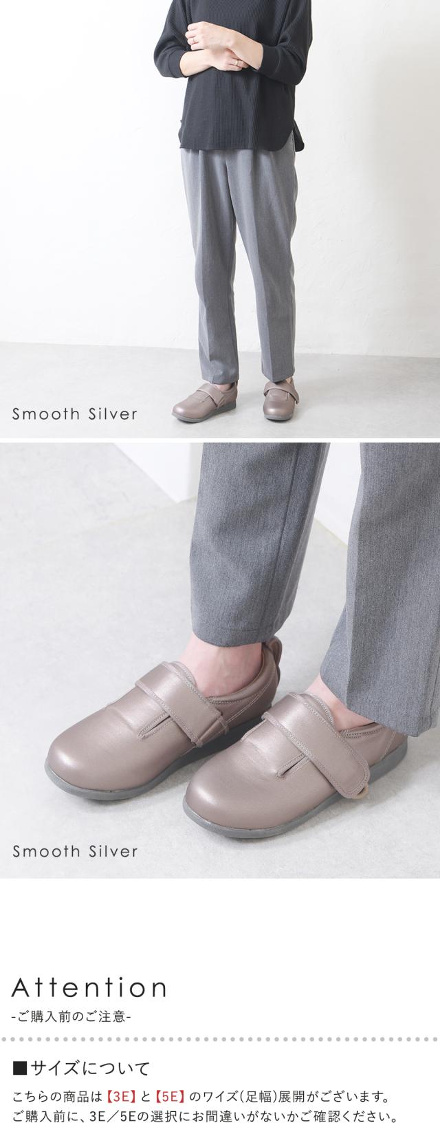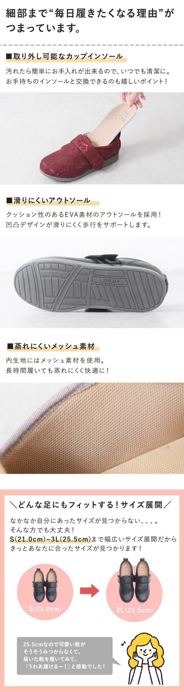 外反母趾・幅広さんでもラクに履けるつま先がゆったりした設計で、3Eと5Eから選べます。