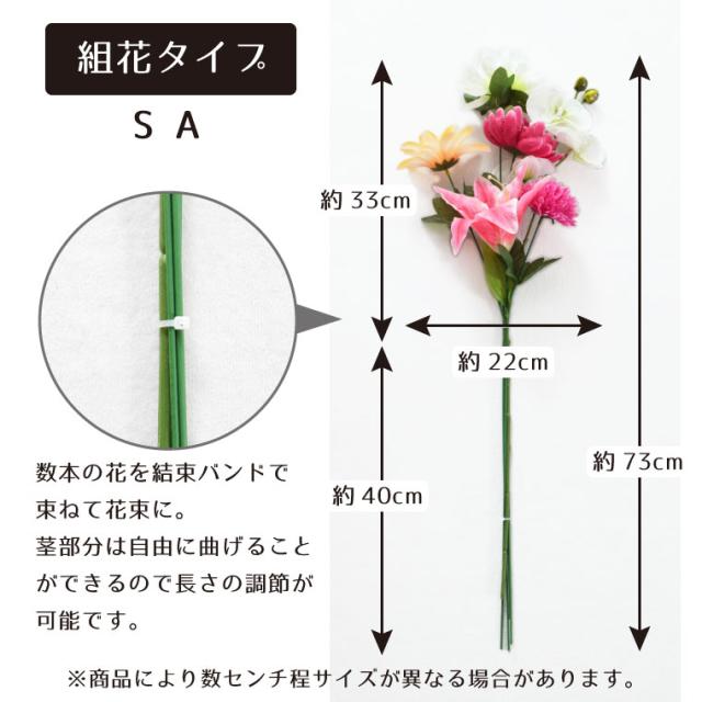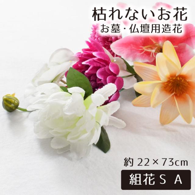 仏花 造花 仏壇用 お墓用 お供え 枯れない花 花 花束 お墓参り お盆準備 お正月準備 お彼岸 お仏壇 納骨堂 供花 お手入れ簡単 菊 ユリ組花S A