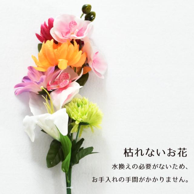 仏花 造花 2点セット 仏壇用 お墓用 お供え 枯れない花 花 花束 お墓参り お盆準備 お正月準備 お彼岸 お仏壇 納骨堂 供花 お手入れ簡単 菊 ユリ 蘭組花S B