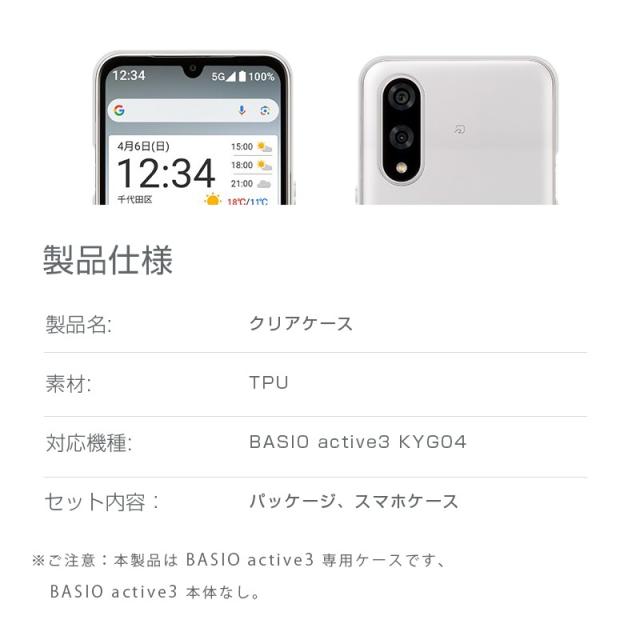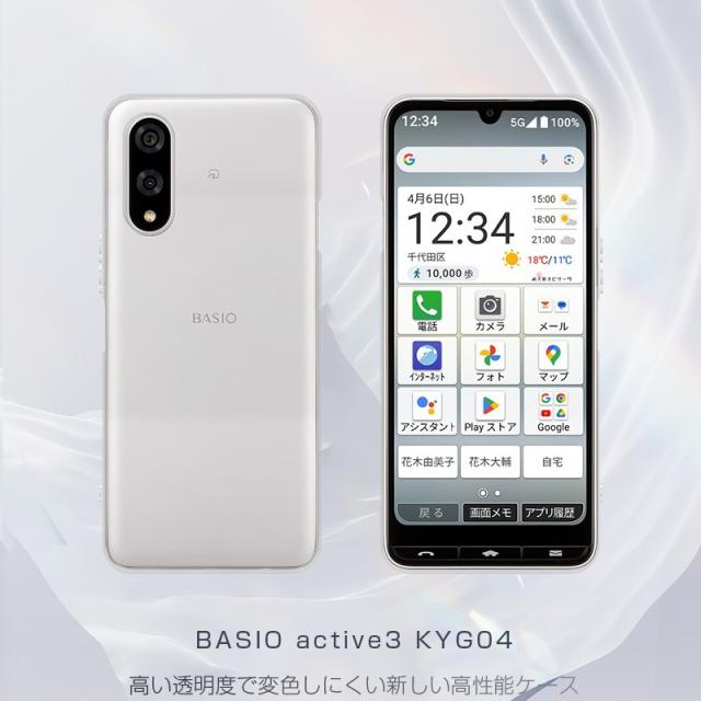 BASIO active3 スマホ保護ケース KYG04 au TPU製ケース KYG04 UQ mobile 傷防止 保護ケース ベイシオアクティブ 3 黄変防止 バックケース 耐衝撃 耐摩擦 超薄型 軽量 クリア マイクロドット加工 シリコン 柔らかい 指紋防止 高弾性 脱着簡単 ストラップホール付き