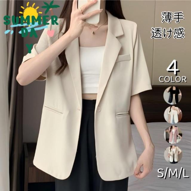 テーラードジャケット レディース ジャケット 半袖 薄手 ビジネス サマージャケット スーツジャケット フォーマル 入学式 卒業式 夏