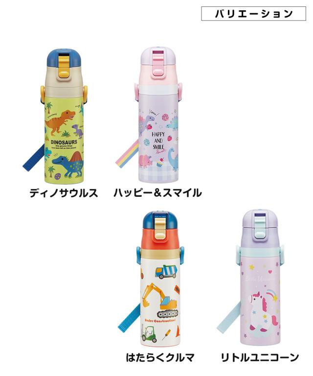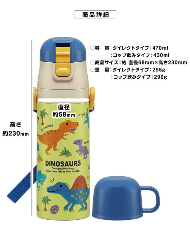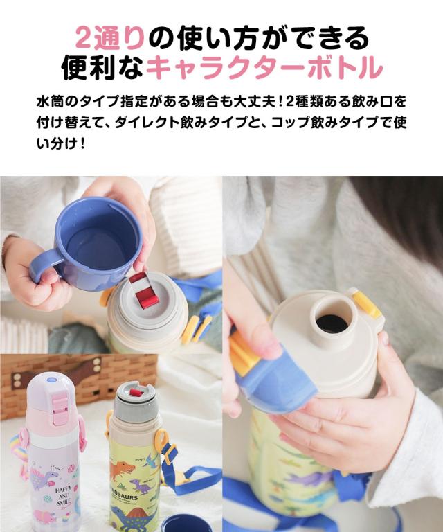 \今だけ10%OFF/ 水筒 キッズ 2WAY 470ml ワンタッチ コップ付き コップ 子供 子ども 直飲み 男の子 女の子 男子 女子 保育園 幼稚園 遠足 キャラクター おしゃれ かわいい 保冷 保温 幼児 こども 恐竜 ディノサウルス ユニコーン 車 SKDC4