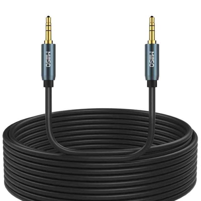 【ステレオミニプラグケーブル 10m】スマホやオーディオプレーヤーを外部スピーカーに接続して音楽を再生できるauxケーブル。(ご注意:MillSO オーディオ分配ケーブルの3.5?プラグは3極なので、マイク機能を搭載していません。 )