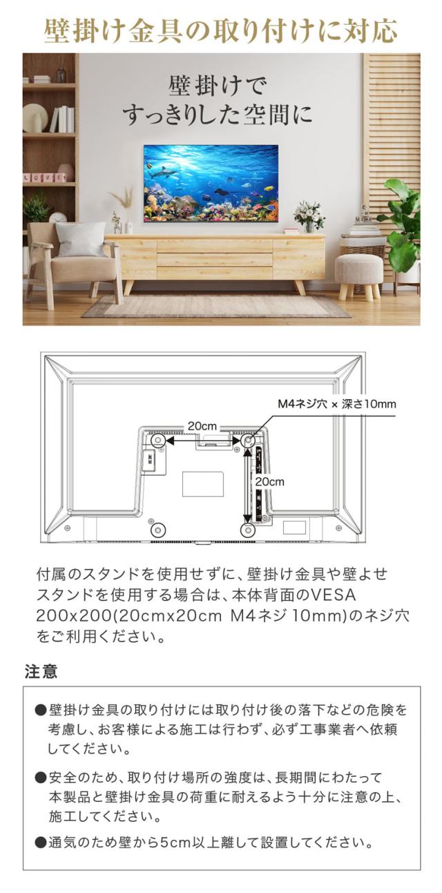 専用リモコン(赤外線+Bluetooth 音声操作対応)、リモコン用乾電池(単4形乾電池×2)、専用電源コード HDMIケーブル、テレビスタンド×2、テレビスタンド取付用ネジ×2、取扱説明書、保証書