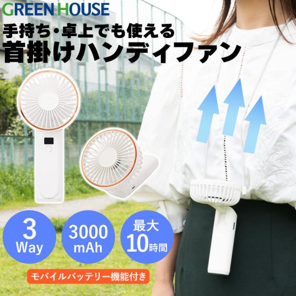 ハンディファン 首かけ 手持ち 卓上 首掛け 扇風機 ファン 静音 小型 コンパクト モバイルバッテリー ギフト GH-FANHHP-WH グリーンハウス