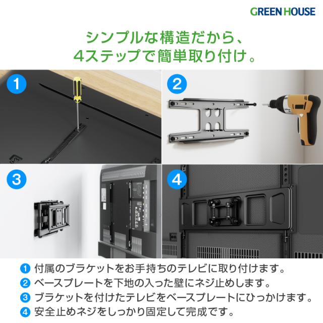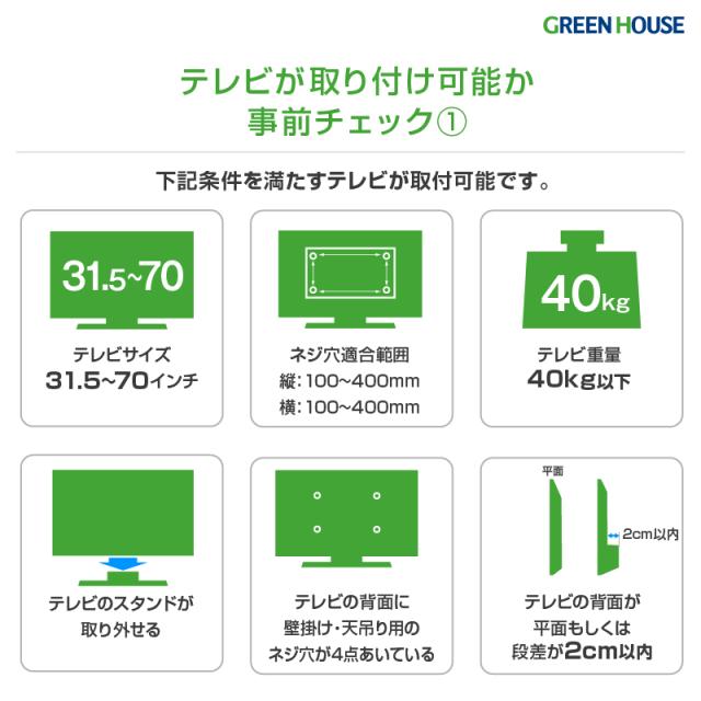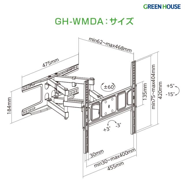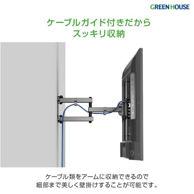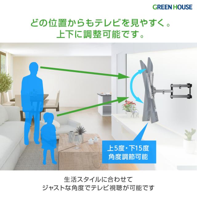壁掛けテレビ 金具 ダブルアーム 31.5〜70インチ テレビ壁掛け金具 上下左右 テレビ 壁掛け 金具 壁掛け金具 tv壁掛け 角度調節 GH-WMDA-BK グリーンハウス