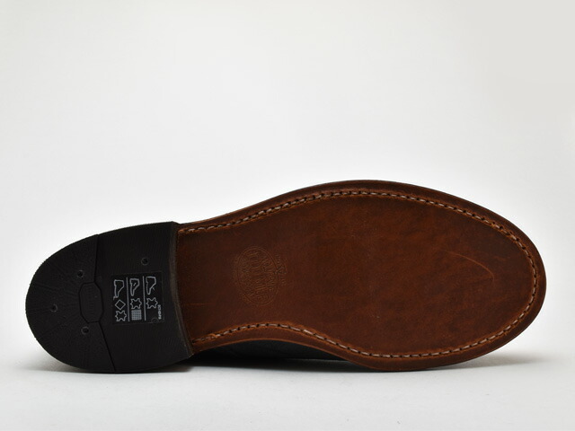 IN SOLE : LEATHER OUT SOLE :ビブラムソール ワイズ表記 : Dワイズ LEATHER: ホーウィン社製クロムエクセルレザー、プレデターレザー(タン部分) しっとりとしてキメ細かく柔軟性の高いホーウィン社製クロムエクセルレザーはシルクのような柔らかい履き心地と光沢が特徴です。 製法 : グッドイヤー・ウェルト製法.英国人"グッドイヤー"が発明した靴製造法。 機械を使った製法としてはもっとも古く手間のかかるため 高級靴にのみ使用されている製法。 アッパーとミッドソールをウェルトと呼ばれる 細い革とともに縫い合わせるところが最大の特徴。 型崩れがしにくく歩きやすいのがこの製法の魅力です。 生産国 : USA |