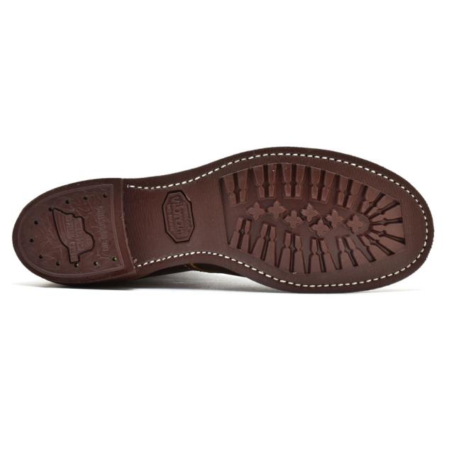 ・アッパー:カッパーラフ&タフレザー ・アウトソール:ビブラム430ミニラグソール ・製法:グッドイヤー・ウェルト製法 英国人グッドイヤーが発明した靴製造法。 機械を使った製法としてはもっとも古く手間のかかるため 高級靴にのみ使用されている製法。 アッパーとミッドソールをウェルトと呼ば る 細い革とともに縫い合わせるところが最大の特徴。 型崩れがしにくく歩きやすいのがこの製法の魅力です。 ・ワイズ:D ・生産国:USA ・その他:LAST NO. 8 |