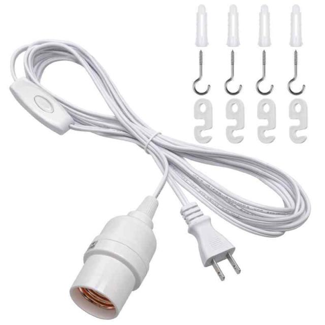 DiCUNO コード付き ソケット E26 電球ソケット コンセント式 スイッチ付き 吊り下げ 4m おしゃれ (ホワイト, 1個入)