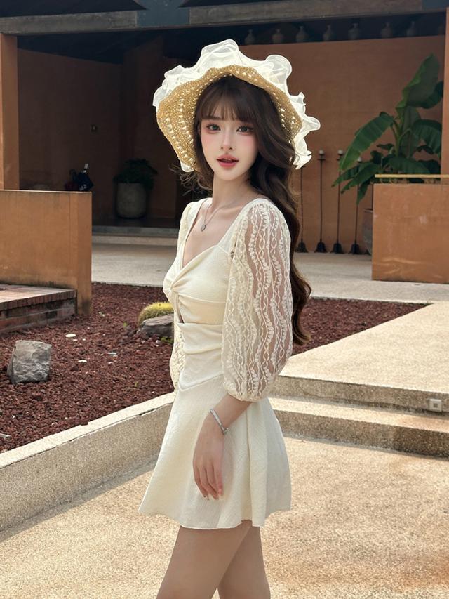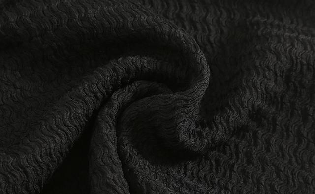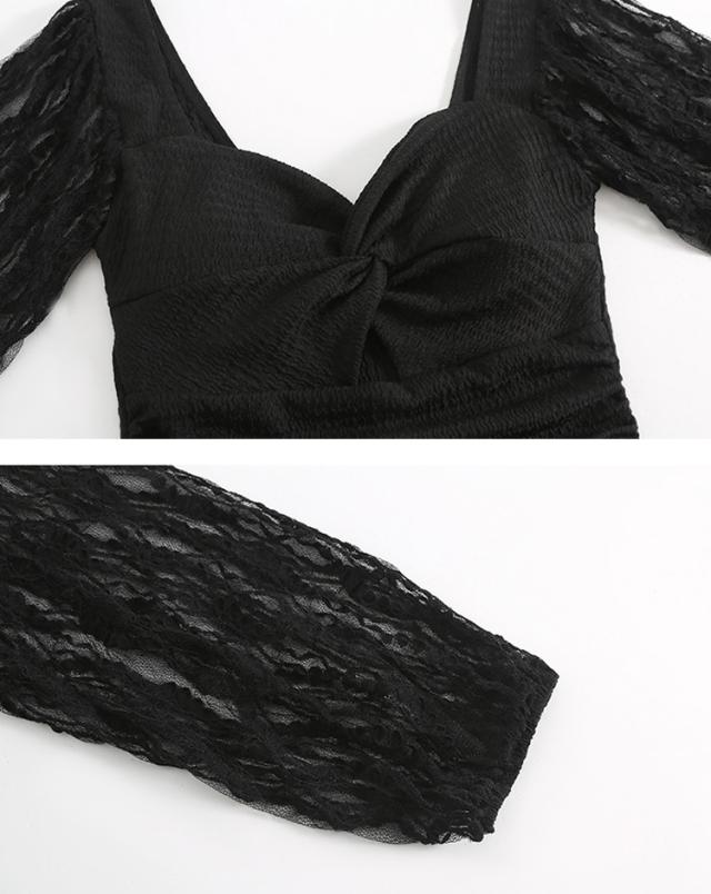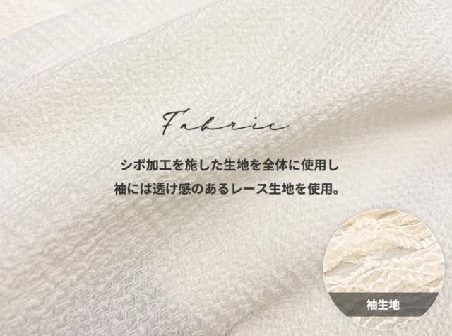 シボ加工を施した生地を全体に使用し袖には透け感のあるレース生地を使用。