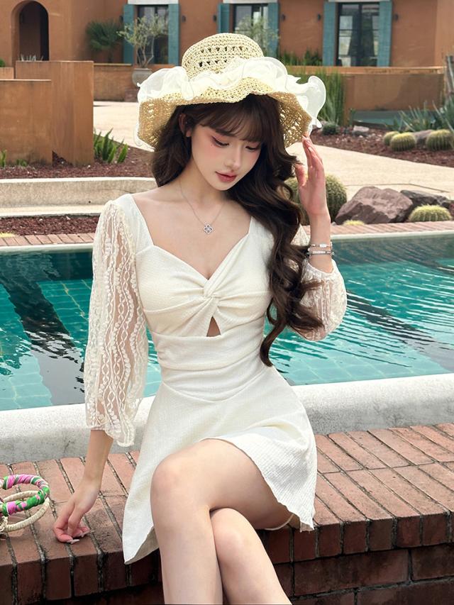 袖部分はレース生地でオシャレにさりげなく二の腕をカバーできるのもうれしい◎