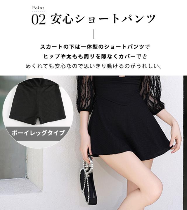 スカートの下は一体型のショートパンツでヒップや太もも周りを隙なくカバーでき、