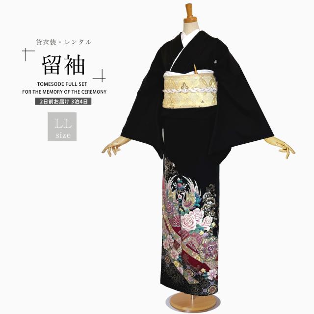 レンタル 黒留袖 フルセット LLサイズ【結婚式 婚礼 貸衣装】【往復送料無料】No78