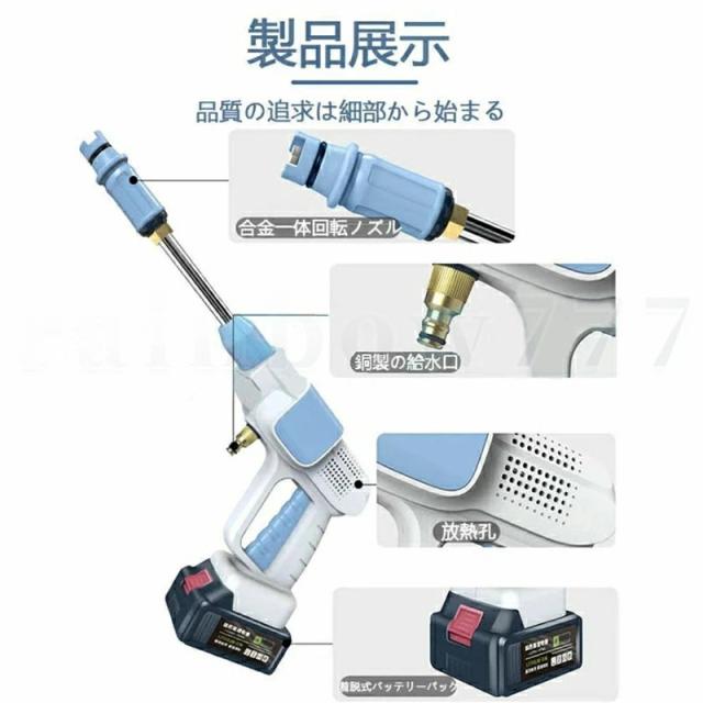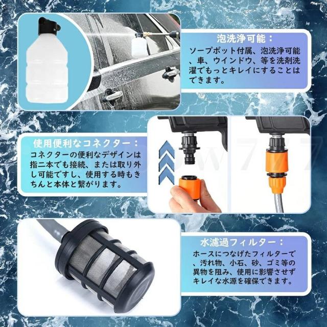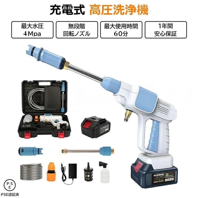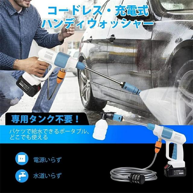 高圧洗浄機 コードレス 軽量 充電式 洗車 大容量バッテリー付き 高圧洗浄器 9点セット 低騒音 60bar ハンディクリーニング 家庭用 強力 洗車タオル 車掃除 大掃除 植木 お墓 庭 窓 階段 外壁