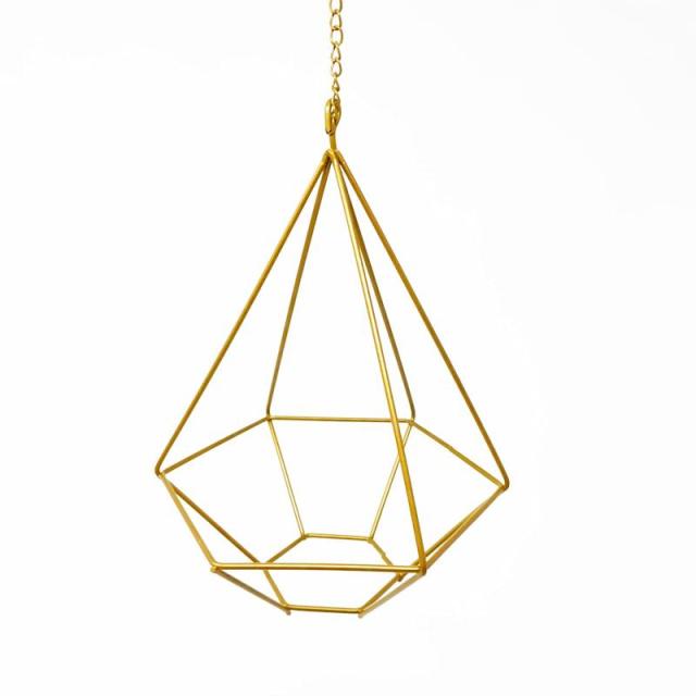 dodtazz アイアン プラントハンガー エアプランツ 観葉植物鉢 吊るす 植物ホルダー (ダイヤ型(六角形)/マットゴールド/幅14.5×高さ20?)