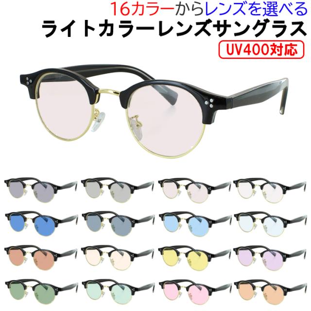サングラス レディース メンズ UVカット 薄い 色 ボストン サーモントブロー コンビフレーム jjk1033 クリングス鼻パッド ライトカラーレンズ グレー ブルー グリーン ブラウン ピンク イエロー 夜間運転 パープル ブルーライトカット UV400 おしゃれ プレゼント ギフト