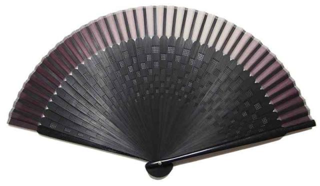 旭王 扇子職人の手作り 紳士 短地 シルク 扇子 骨色黒染 22cm 40間 中骨レーザー加工 市松模様 パープル 169006