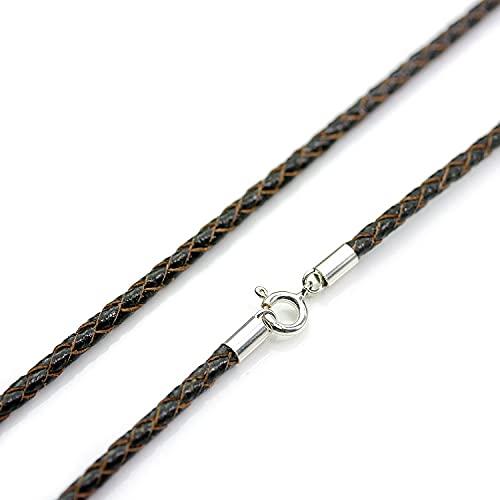[シルバーワン] シルバー 編み込みレザーチョーカー (黒 茶 焦茶 グレー)[幅3mm 長40cm45cm50cm60cm]革ひも (ダークブラウン)