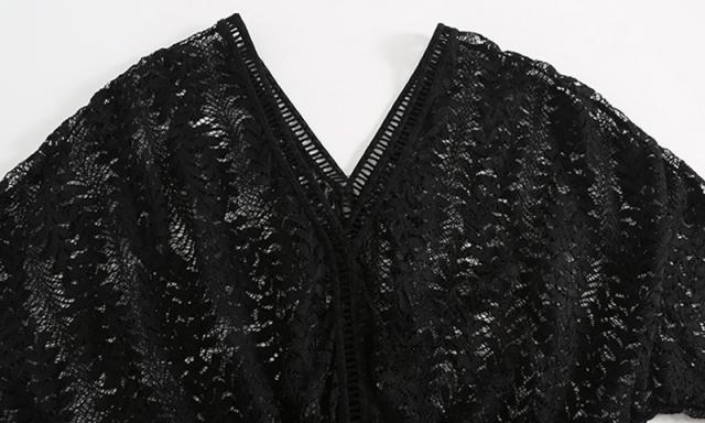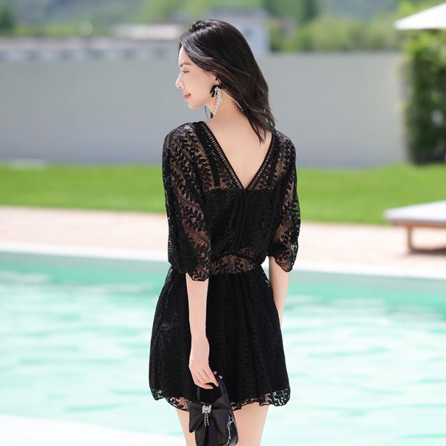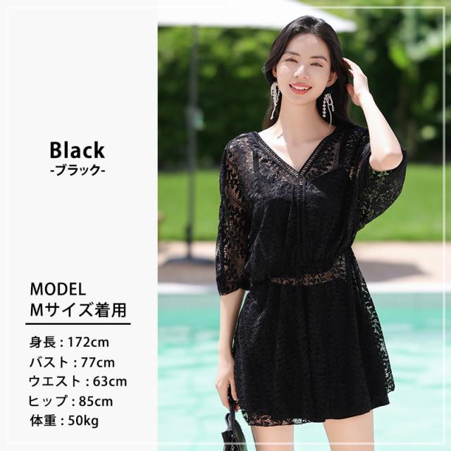 露出を控えめにし体型カバーも叶うレースワンピース&ワンピースを脱ぐだけで