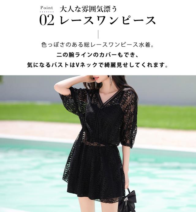 色っぽさのある総レースワンピース水着。