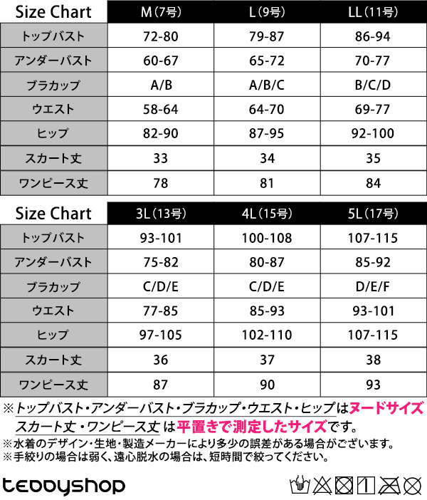 ※トップバスト・アンダーバスト・ブラカップ・ウエスト・ヒップはヌードサイズ、