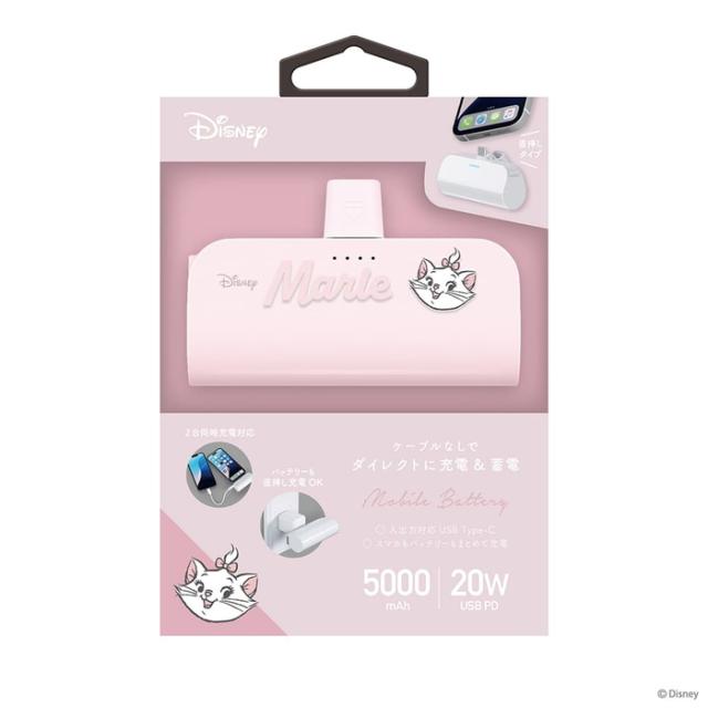 USB Type-C 直挿しモバイルバッテリー 5,000mAh マリー ディズニー 持ち運び ハンズフリー 充電器 バッテリー 2台同時充電 タイプC タイプシー 機内持ち込みOK 充電 かわいい