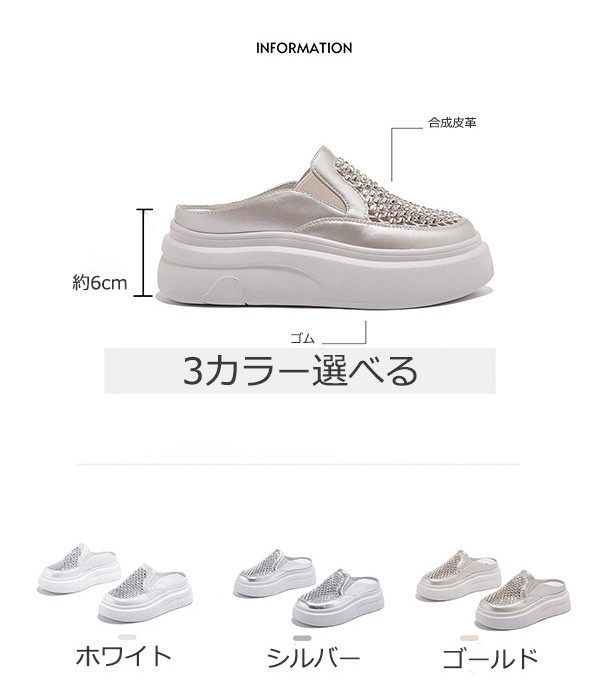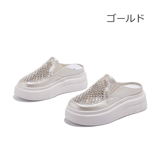 スニーカー サンダル レディース 22.5~25.0cm 厚底 通気性 透け感 メッシュ シースルー つっかけ フラット 疲れにくい 美脚 歩きやすい ヒール6cm かかとなし 脱ぎやすい ホワイト ゴールド シルバー me005m5m5ld