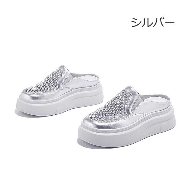 スニーカー サンダル レディース 22.5~25.0cm 厚底 通気性 透け感 メッシュ シースルー つっかけ フラット 疲れにくい 美脚 歩きやすい ヒール6cm かかとなし 脱ぎやすい ホワイト ゴールド シルバー