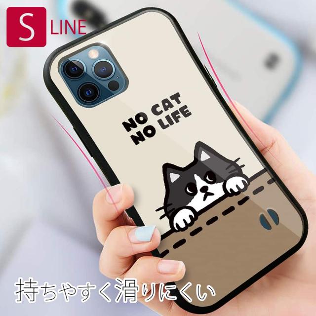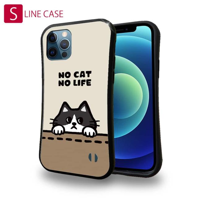 S-LINE ケース iPhone13 mini iPhone13 Pro Max iPhone12 Pro iPhone11 Pro iPhoneXs iPhoneXR Xperia 5 III Xperia 10 III Pixel 5a AQUOS sense6 かわいい ネコ 猫 用品 雑貨 何か気になるハチワレ猫(wakat)