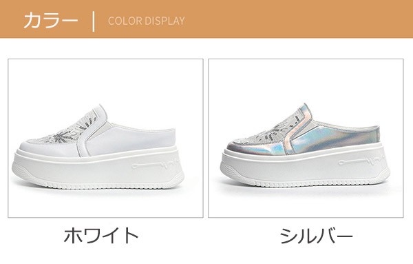 スニーカー サンダル レディース 厚底 通気性 透け感 メッシュ シースルー つっかけ フラット インヒール かかとなし 脱ぎやすい シューズ シルバー ホワイト 普段履き サボサンダル スニーカーサンダル 22.0-24.5cm me003m5m5ld
