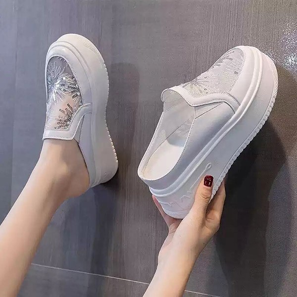 スニーカー サンダル レディース 厚底 通気性 透け感 メッシュ シースルー つっかけ フラット インヒール かかとなし 脱ぎやすい シューズ シルバー ホワイト 普段履き サボサンダル スニーカーサンダル 22.0-24.5cm
