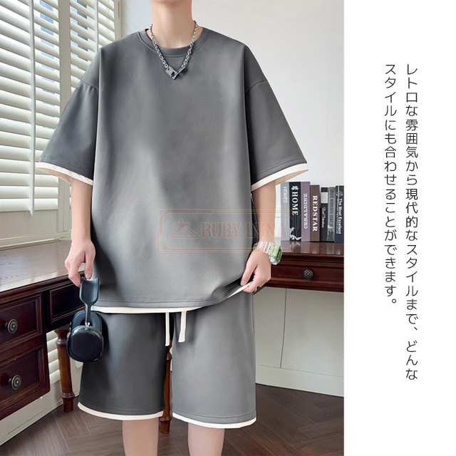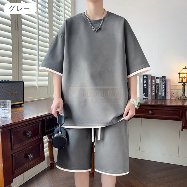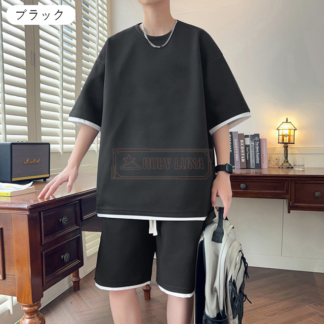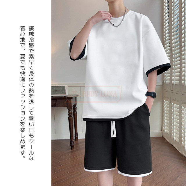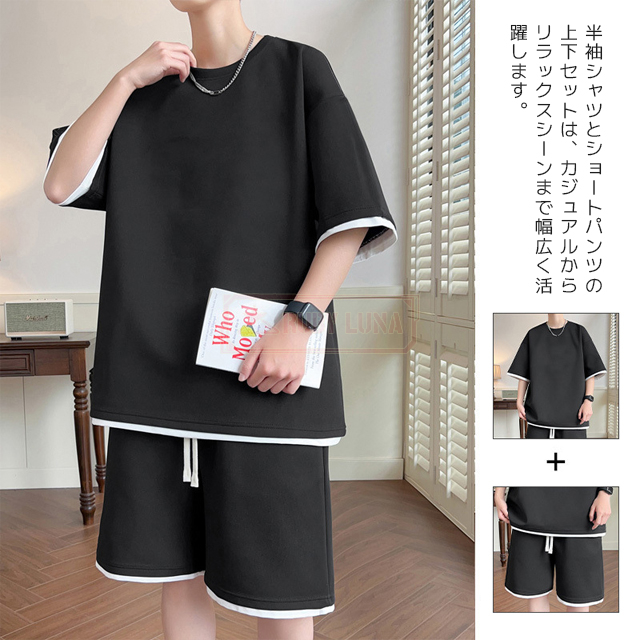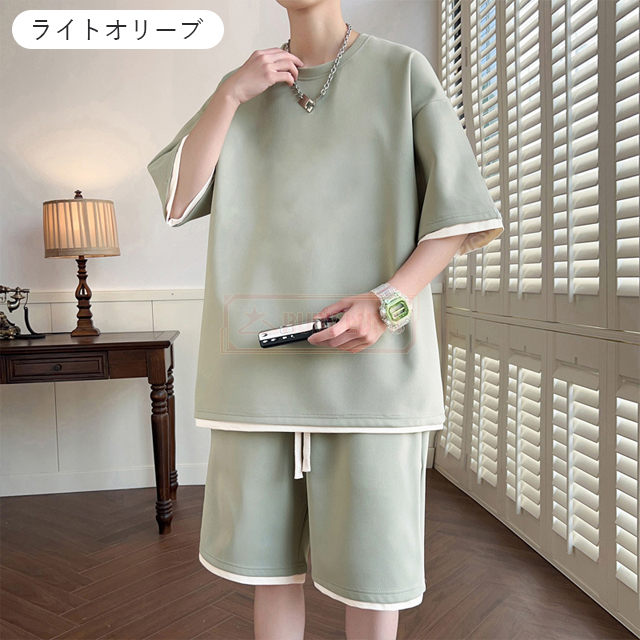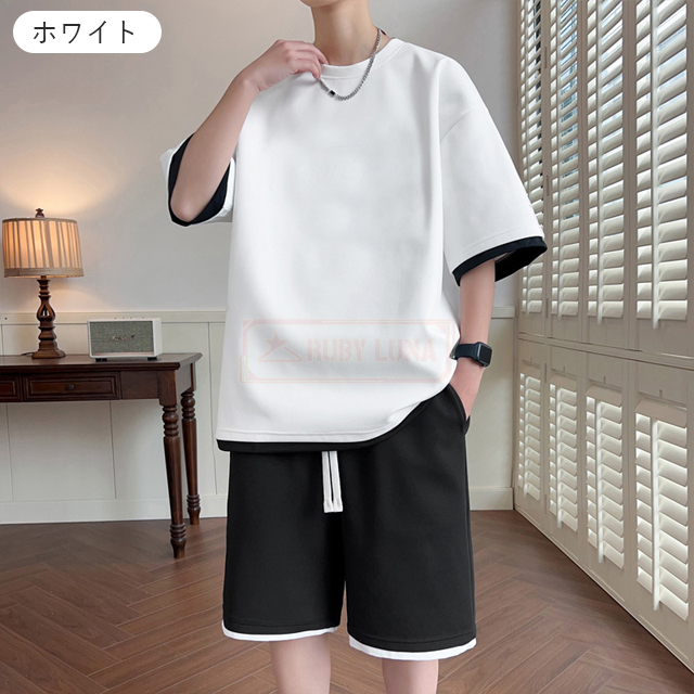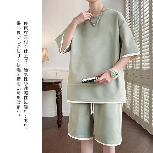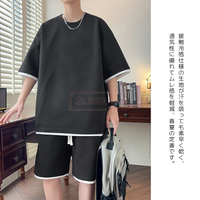 最安挑戦 冬新作 送料無料 新作 セットアップ メンズ ジャージ フェイク ツーピース 上下セット 吸汗 速乾 無地 シンプル 半袖Tシャツ ハーフパンツ 2点セット カジュアル スポーツウェア ランニングウェア 夏服 お洒落
