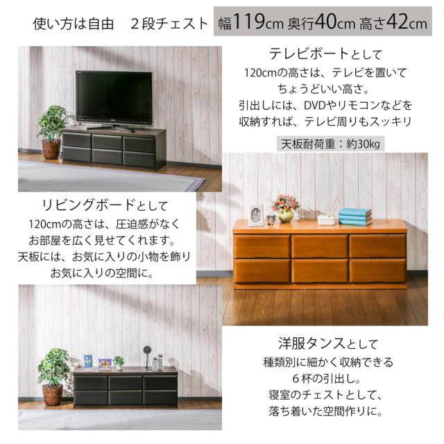 タンス ローチェスト 幅120 完成品 ロータンス 洋服タンス 120-2 収納家具チェスト 洋服収納タンス 収納ケース レール付き チェスト 2段タンス 整理タンス 低い棚 低い台 収納だな ローチェストおしゃれ ローボードテレビ台 木製ローチェスト 日本製 大川家具
