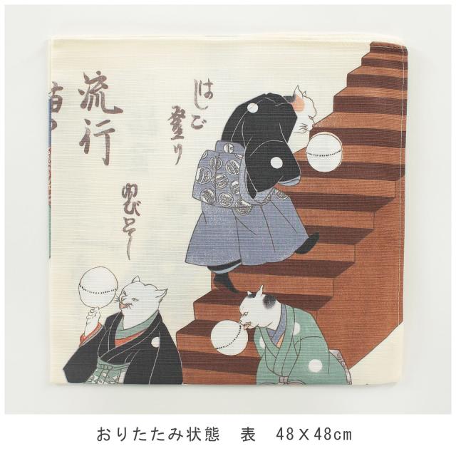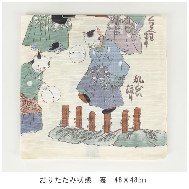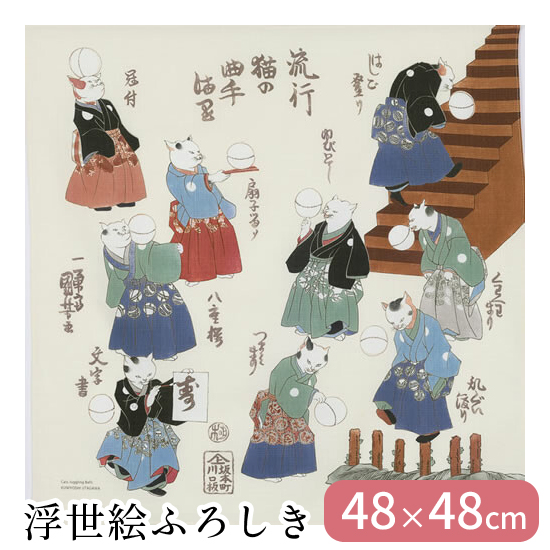 風呂敷 ふろしき 綿100% 日本製 48×48cm 浮世絵 流行猫の曲手まり 歌川国芳 毬 着物 ネコ CAT 猫グッズ 包装袋 収納 包み ギフトラッピング ブックカバー お弁当包み タペストリー 額 母の日 父の日 敬老の日 誕生日 プレゼント ラッピング 【メール便送料無料】