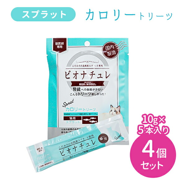 【賞味期限2027.4.30】【4個セット 合計20本】ビオナチュレ カロリートリーツ 猫用 スプラット 10g×5本入り 4セット 食欲低下 食欲不振 おやつ 国産 国内製造 ペット やぎミルク DHA含有フィッシュオイル 低リン 低ナトリウム 着色料未使用