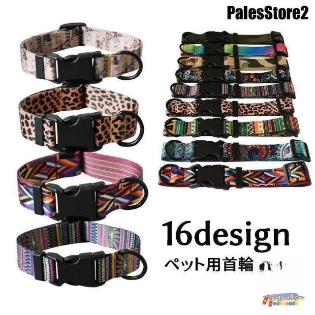 迷彩、ヒョウ柄、エスニック調などおしゃれなペット用首輪です。