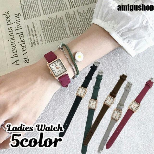 腕時計 リストウォッチ レディースウォッチ 女性 婦人用 レザー調 スクエア 四角 上品 エレガント シンプル おしゃれ かわいい 通勤 オフィス 通