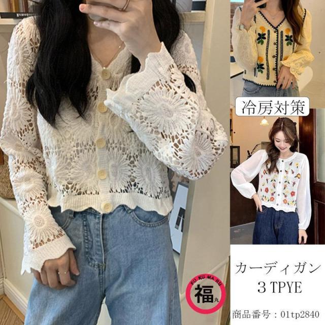 カーディガン レディース 春 春夏 ニット 長袖 ショート丈 トップス コーデ コーディガン 刺繍 シースルー 前開き ボタン留め エアコン対策 冷房対策 カジュアル