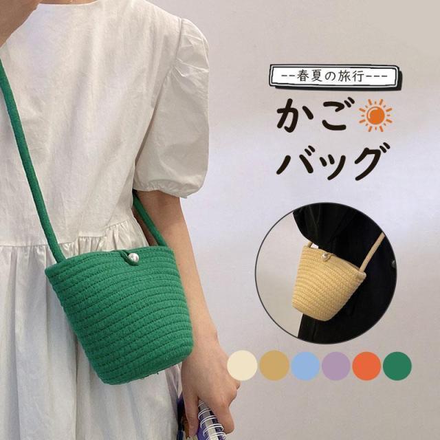 バッグ かごバッグ レディース カゴバッグ 夏 斜めがけ 肩掛け 草編み 軽い トート ショルダー 母 デイリー 旅行 出張 浴衣 ゆかた 和装