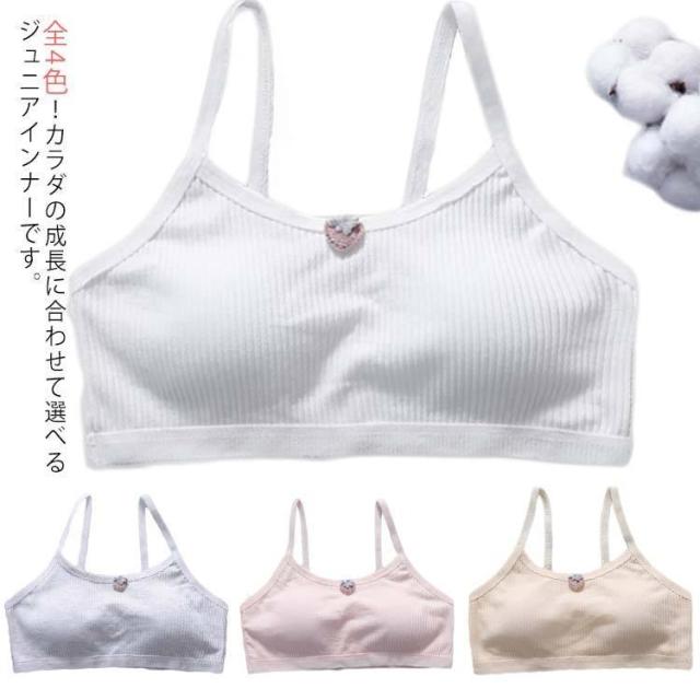 ジュニア ブラジャー 子供 ブラ 綿100% 成長期 快適 着心地 バット付き タンクトップ スポーツブラ かわいい 女の子 中学生 小学生 ガールズ