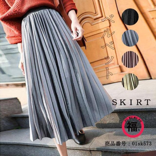 ロングスカート 秋冬 プリーツスカート レディース ロング丈 フレアスカート ベロアスカート ウエストゴム