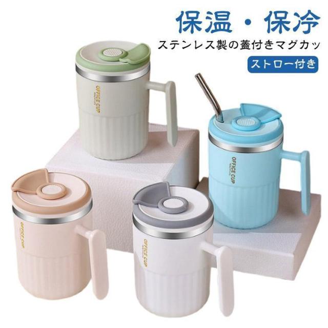 マグカップ ステンレスマグ 蓋付き ストロー付き 保温 保冷 マグ コップ 450mL おしゃれ 真空断熱 ステンレス フタ付き コーヒー オフィス